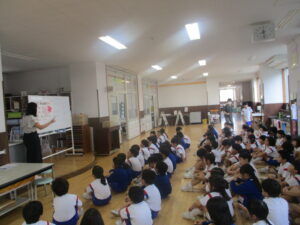 消防署の方からお話を聞いたよ(4年生) 2025年10月7日 4年生, 学校 4年生は、2学期の総合的な学習の時間に火災予防について学習を進めています。 砺波地域消防組合南砺消防署東分署のお二人にお越しいただき、リチウムイオン電池による火災の原因などを説明していただきました。火災件数を知ることや、動画を見て危険な火事につながることを確認しました。子供たちの中で、「自分たちの町を火災から守りたい。」「リチウムイオン電池の危険性や、ゴミの正しい分別方法を広めたい。」という声が聞こえました。 これから自分たちにできることを考え、南砺市を火災から守るために活動していきます。