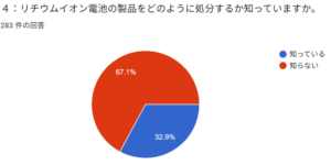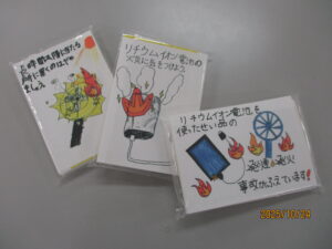 保護者の皆様におかれましては、4年生が総合的な学習の時間に取り組んでいる、「火災予防についてのアンケート」に御協力いただきありがとうございました。このアンケート結果から子供たちは、リチウムイオン電池の処分の仕方を知らない割合が大きいことに気付き、「詳しい分別の方法をポスターで伝えたい」「校内や地域の人に伝えたい」などの思いをもちました。