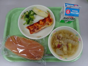 コッペパン・牛乳・五箇山豆腐のミートグラタン・ゆでブロッコリー