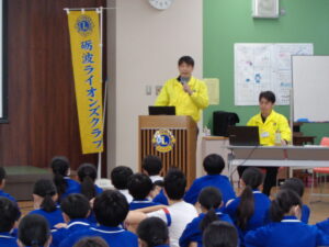 6年生は、保健の学習で、砺波ライオンズクラブの方に「薬物乱用防止教室」を開いていただきました。