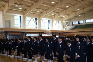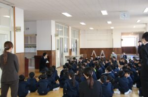 令和8年度 新任式・始業式 2026年4月8日 学校 4月8日(火)、4月1日に着任した教職員を紹介する新任式を行いました。一日も早く顔と名前を覚えて、一緒に楽しく学習したり、活動したりできるといいですね。 新任式に引き続き、令和8年度1学期始業式を行いました。吉尾校長は、「今続いている挨拶を富山県1位にしましょう」「本を読みましょう」ということを呼びかけました。その後、学級担任等の紹介をし、校歌を歌い式を終え、学級活動に入りました。 今年度も充実した1年になるよう、願っています。
