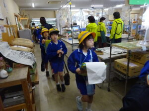 「どんな場所なのか」「どのようなものがあるのか」など、子供たちは興味津々に施設内を歩きました。子供たちの中には、初めて知ったことや気になったことはすぐにメモを取る姿も見られました。見学の後に、職員の方が学校に説明に来ていただきました。そして、質問タイムを設け、「なぜおいしい野菜が作れるのか」「よく売れているものは何か」などの質問に答えていただきました。