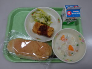 コッペパン・牛乳・五箇山豆腐バジルフライ