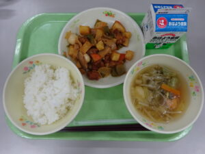 ごはん・牛乳・酢豚・春雨とつみれのスープ