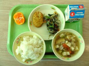 ごはん・牛乳・南砺市産里いも入りハンバーグ