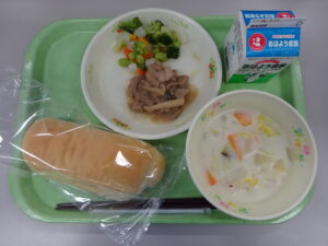 コッペパン・牛乳・豚肉の赤ワイン煮