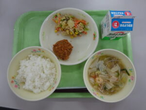 ごはん・牛乳・かぼちゃチーズフライ・ツナサラダ・えびとワンタンのスープ